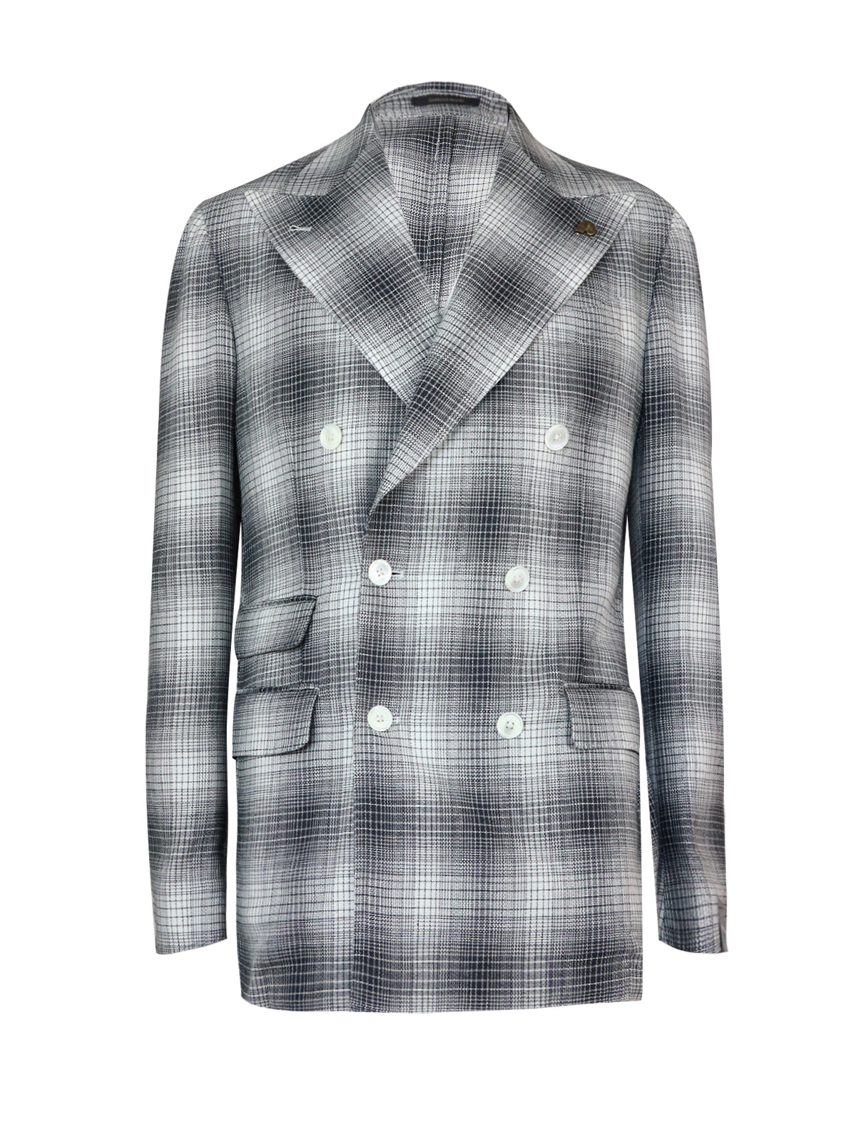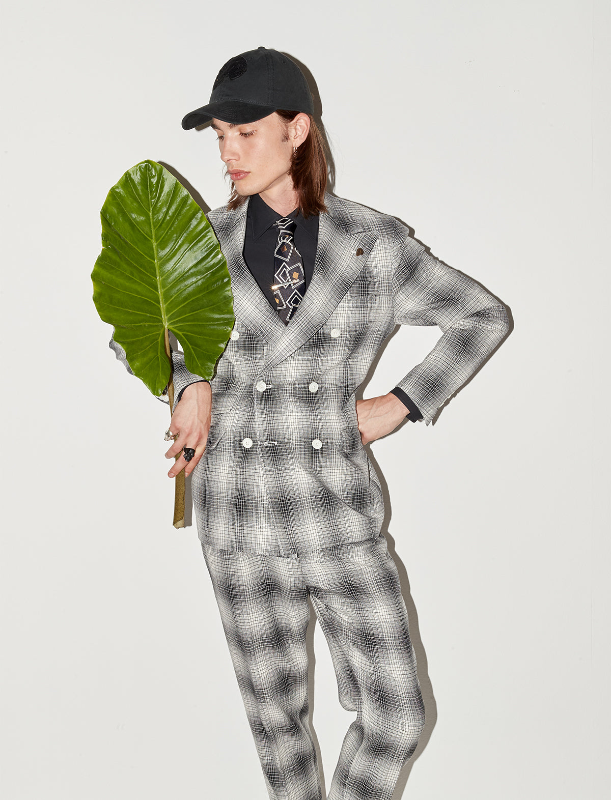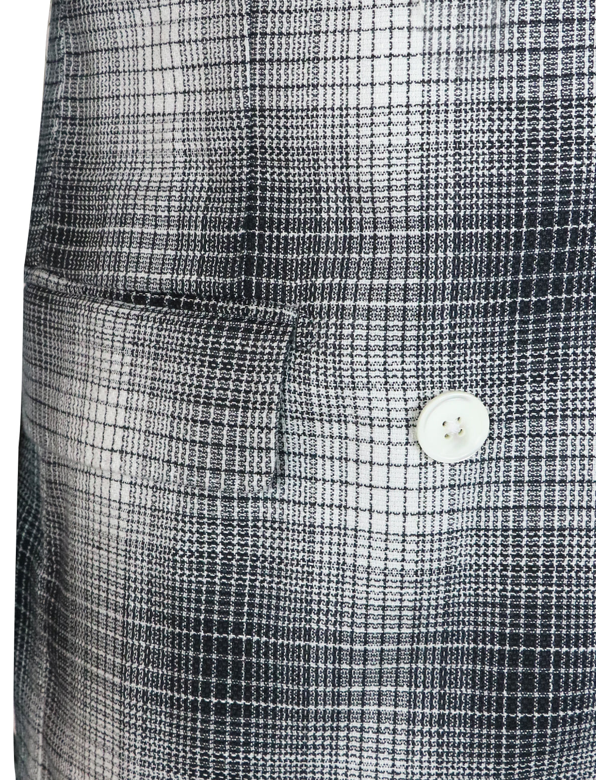 The understated statement jacket sure to spark conversations, this double-breasted number features a unique checkered pattern alongside fine stripes that make up a visually-interesting pattern. Featuring an unlined back ideal for warmer days, functional pockets, large notched lapels and buttoned cuffs. Gabriele Pasini's unique signature skull detail is positioned elegantly on the tip of the left lapel. Wear yours with the matching Cruise Pants and top it off with sandals for that smart, laid-back look the world has come to love.