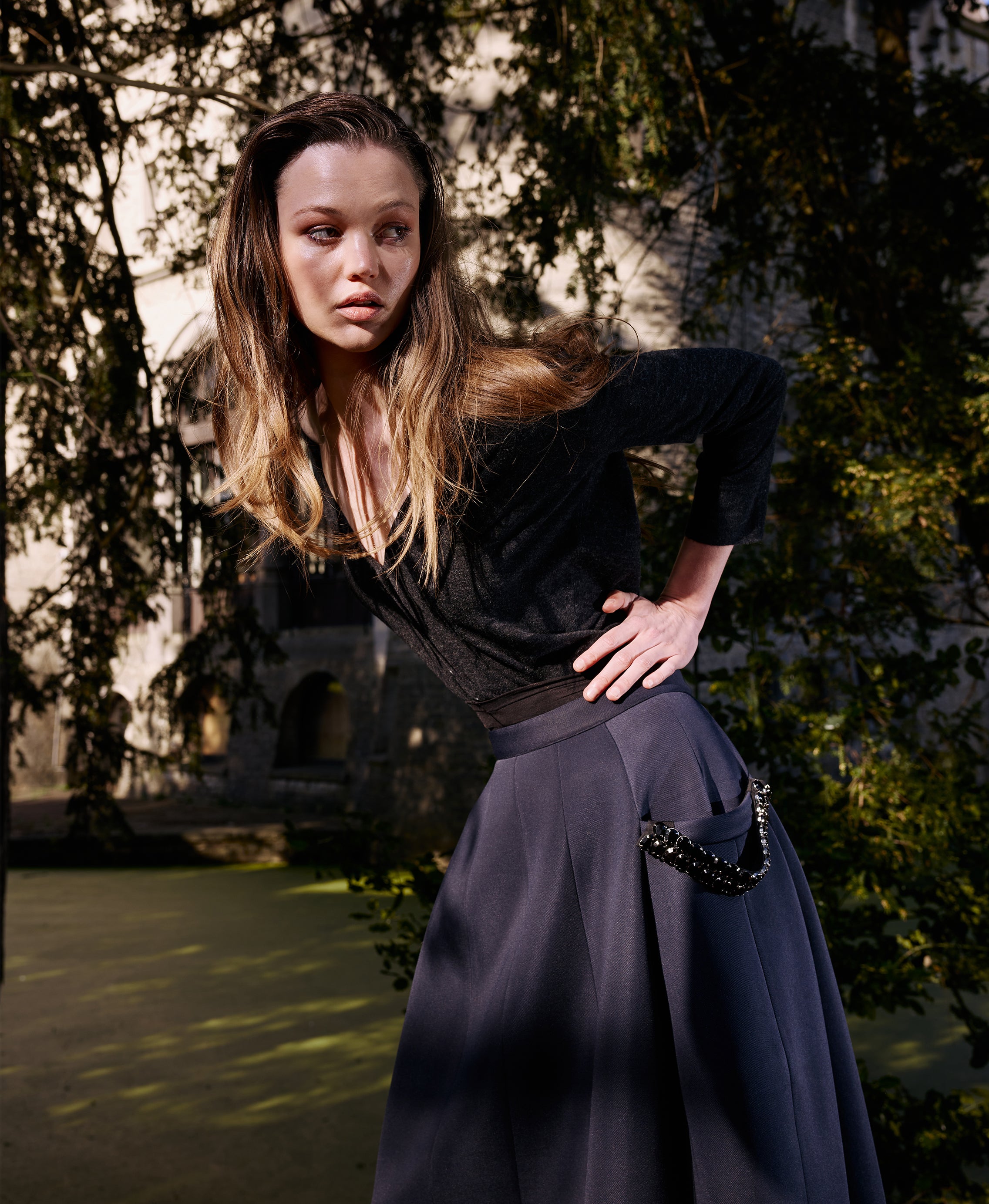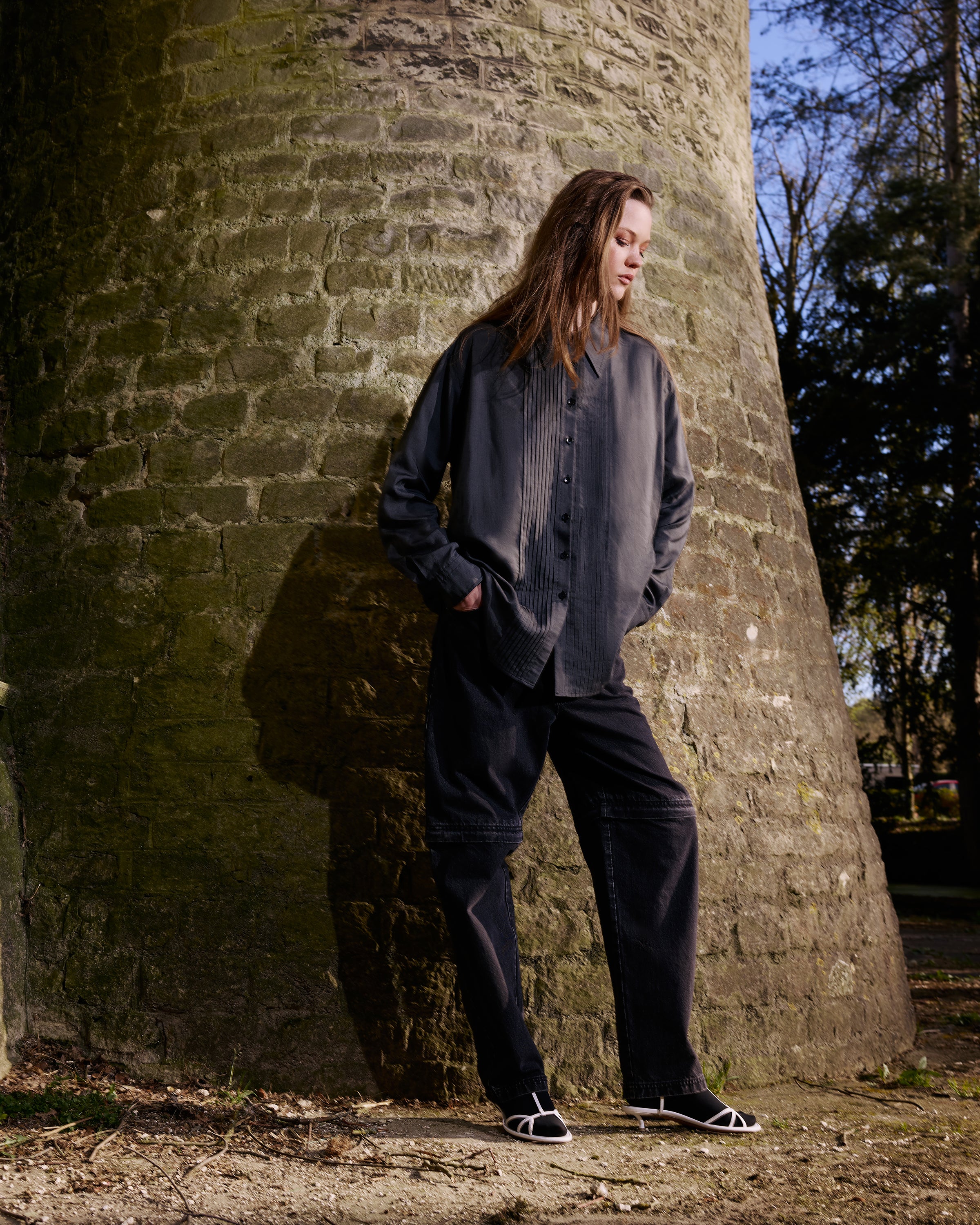 TIBI Silk Voile Easy Pintucked Shirt in Graphite