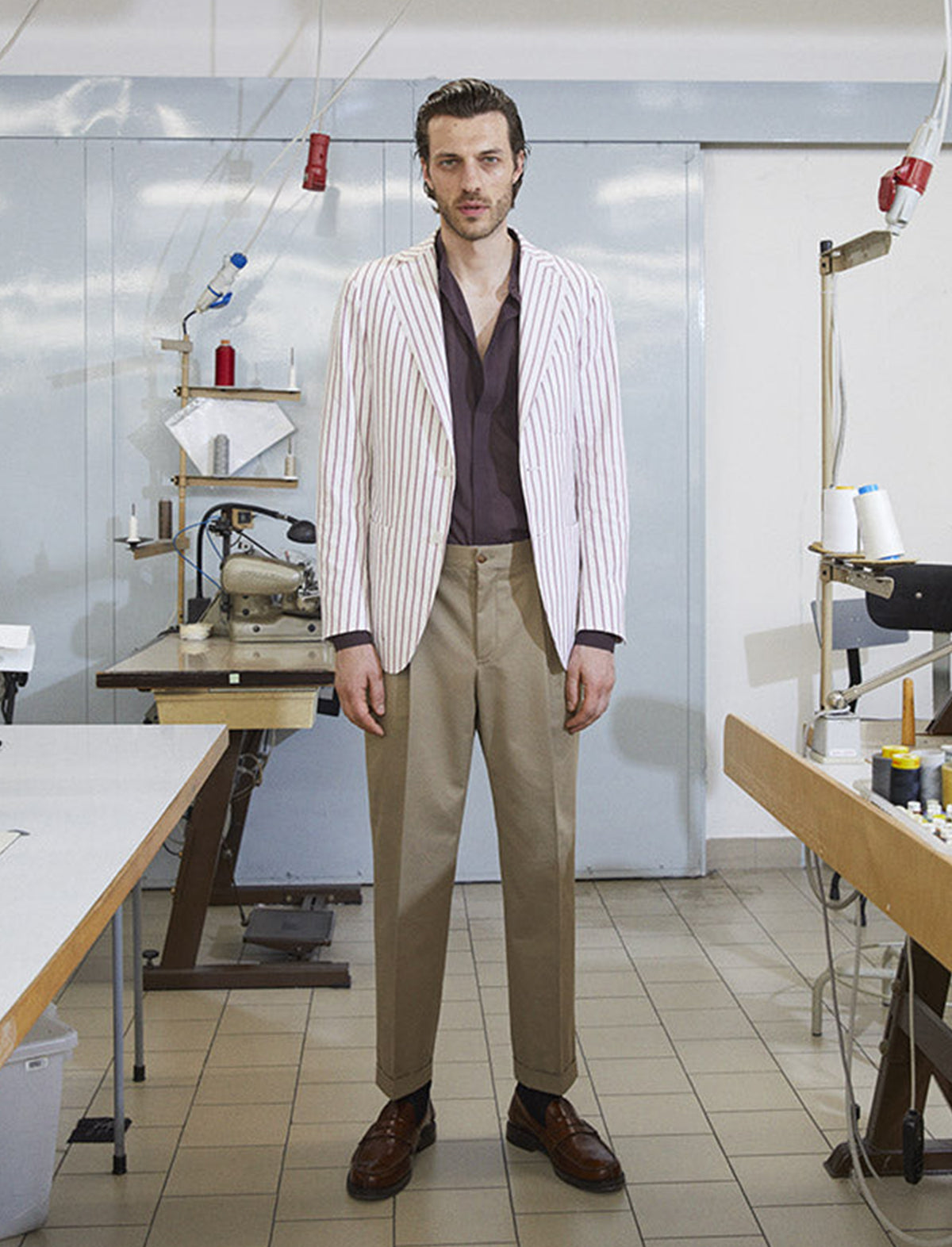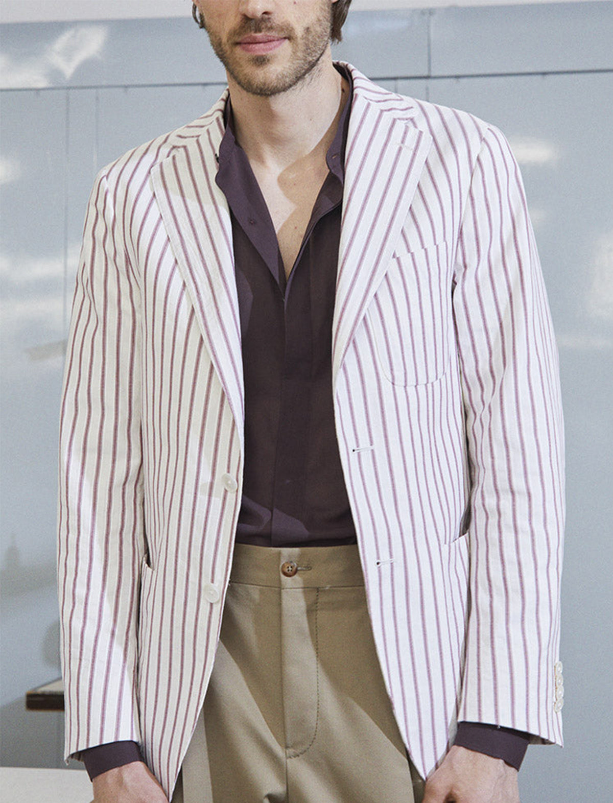 A summer essential sure to charm, this 100% cotton blazer sports a green and white striped pattern that is sure to elevate any look. Featuring functional pockets, notched lapels, branded buttons and an expertly tailored fit. Style yours over a dark-coloured shirt and go light on the bottom for a modern edit with a touch of sophistication.
