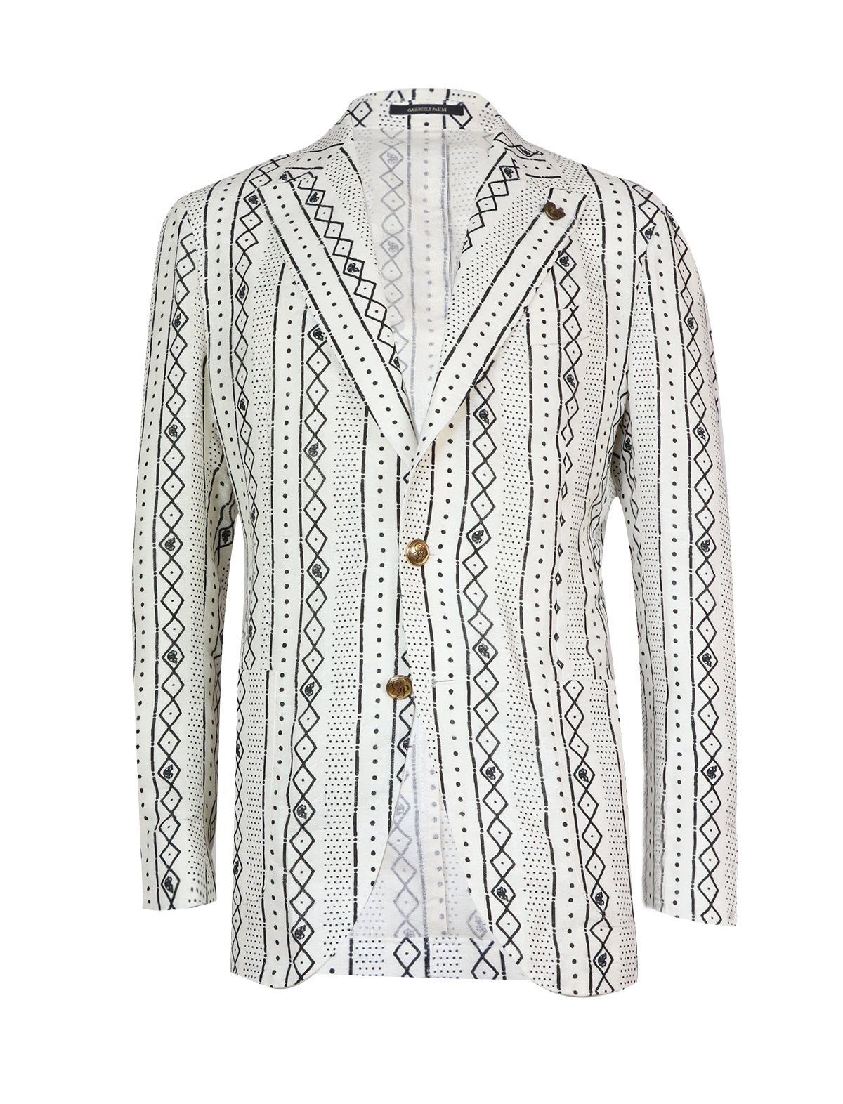 GABRIELE PASINI Cotton-Flax Blazer in White Aztec