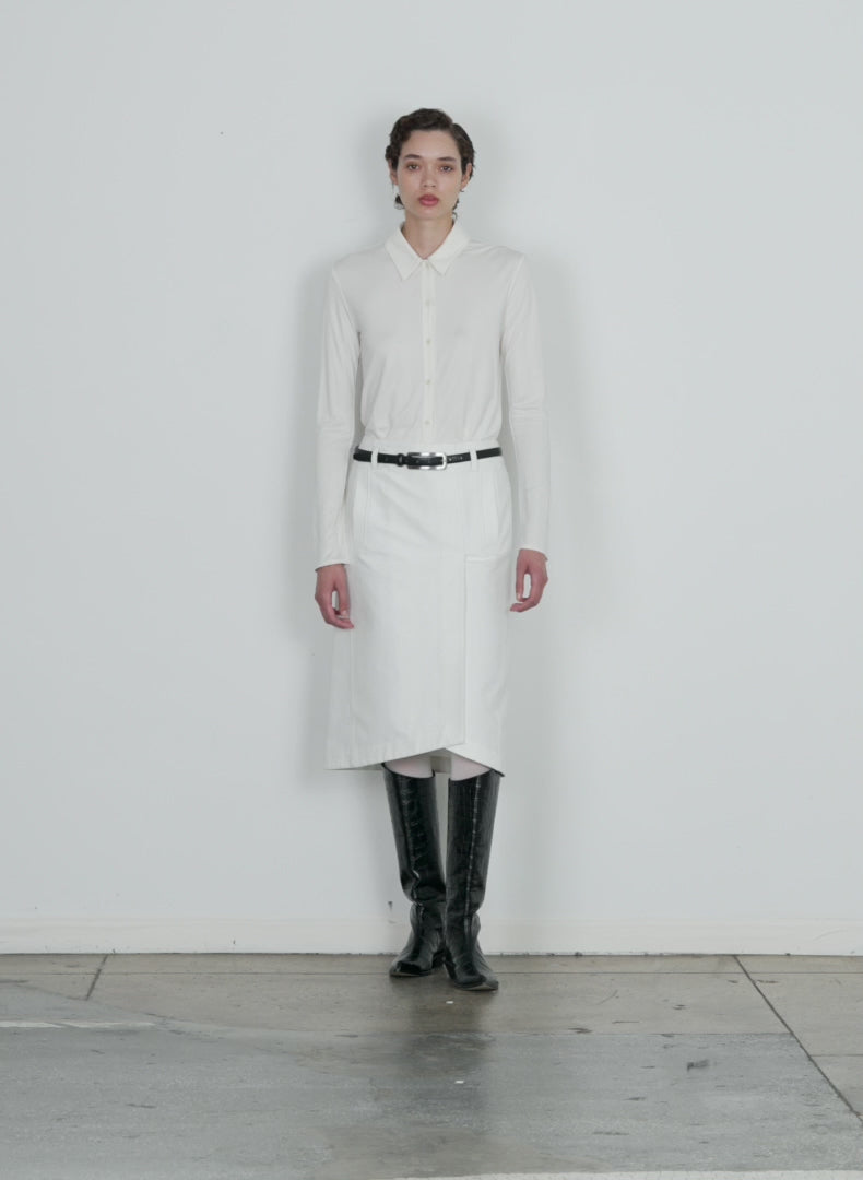 TIBI Deeba Jersey Cupro Slim Shirt in Ivory