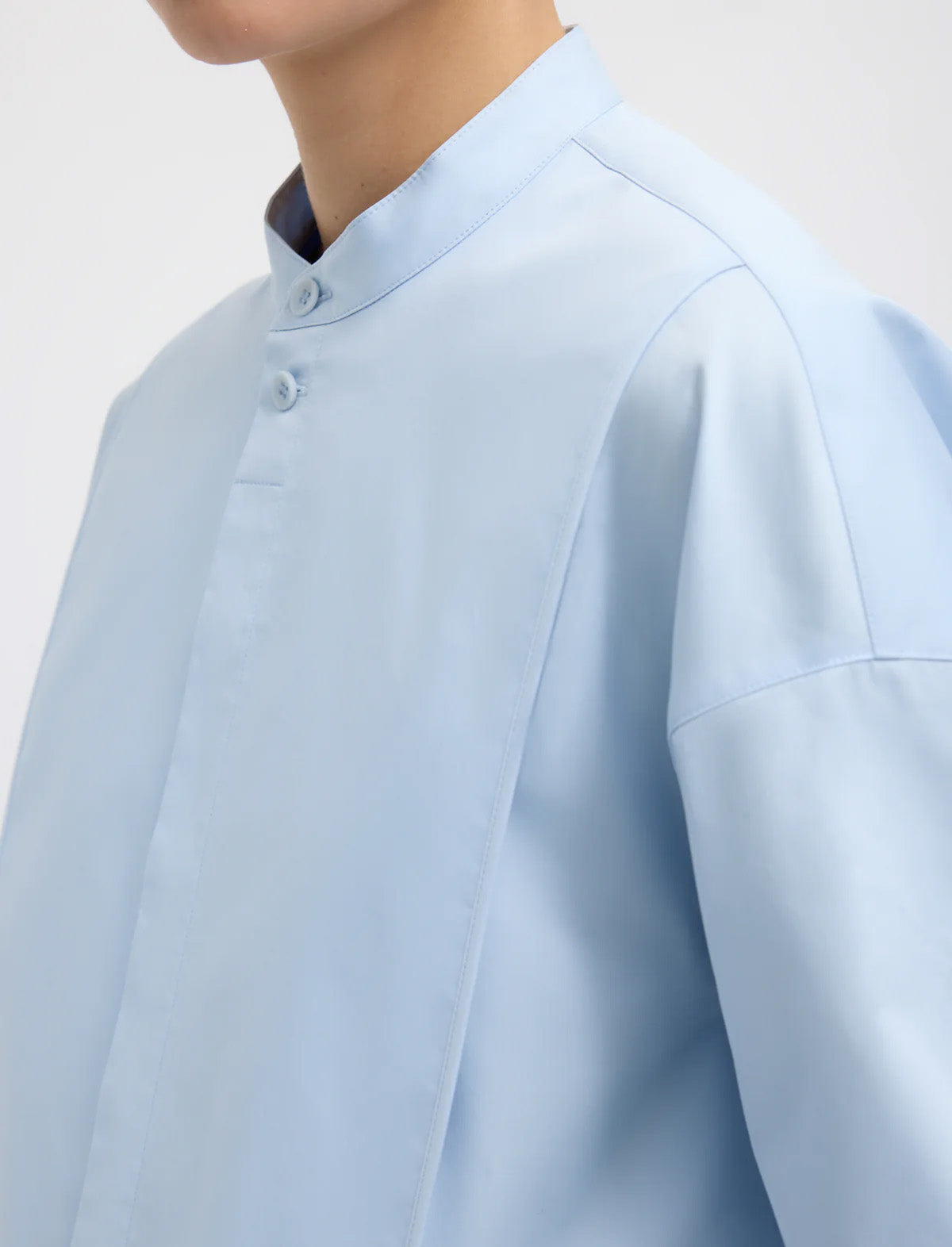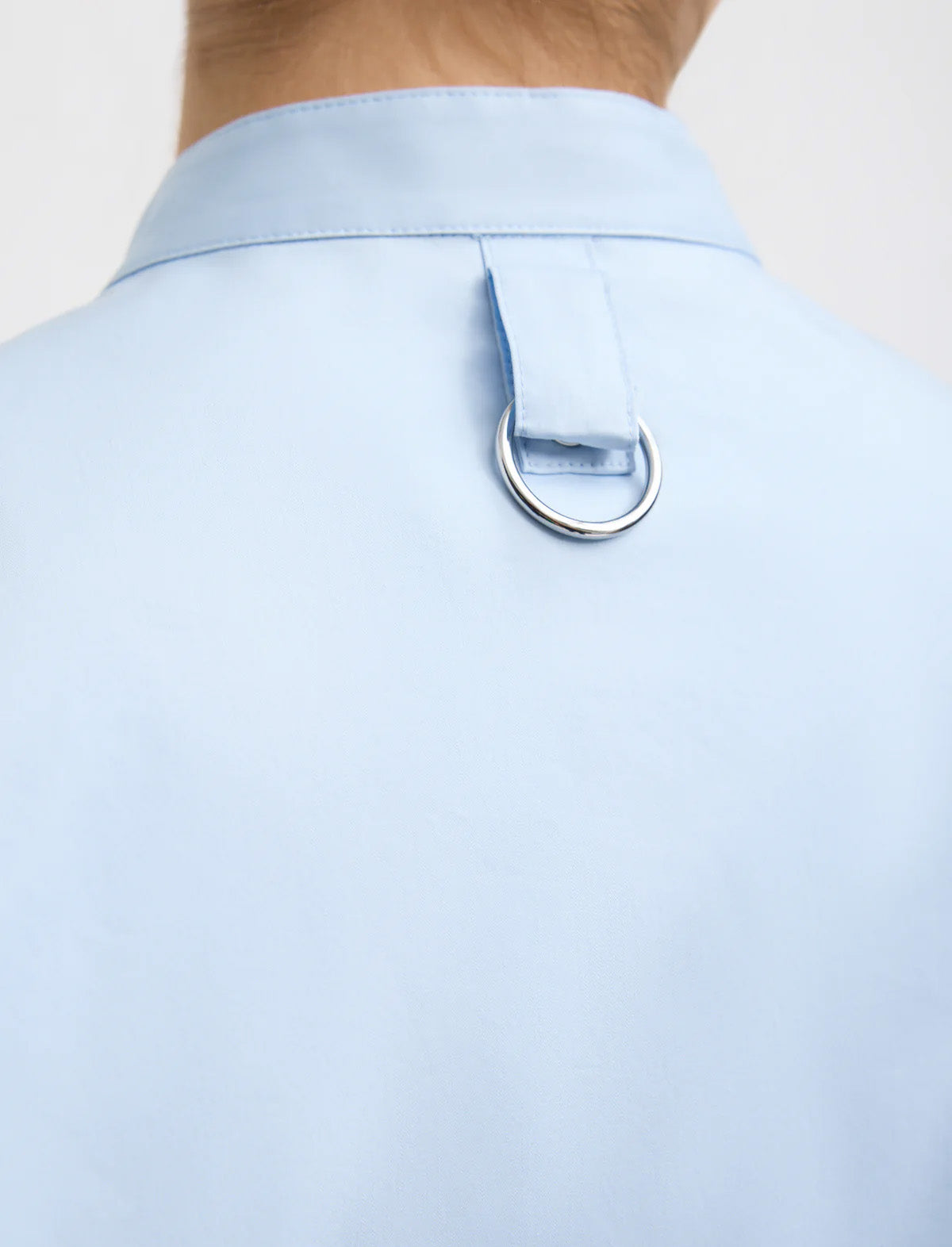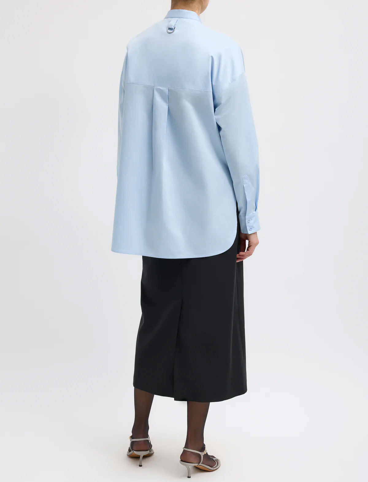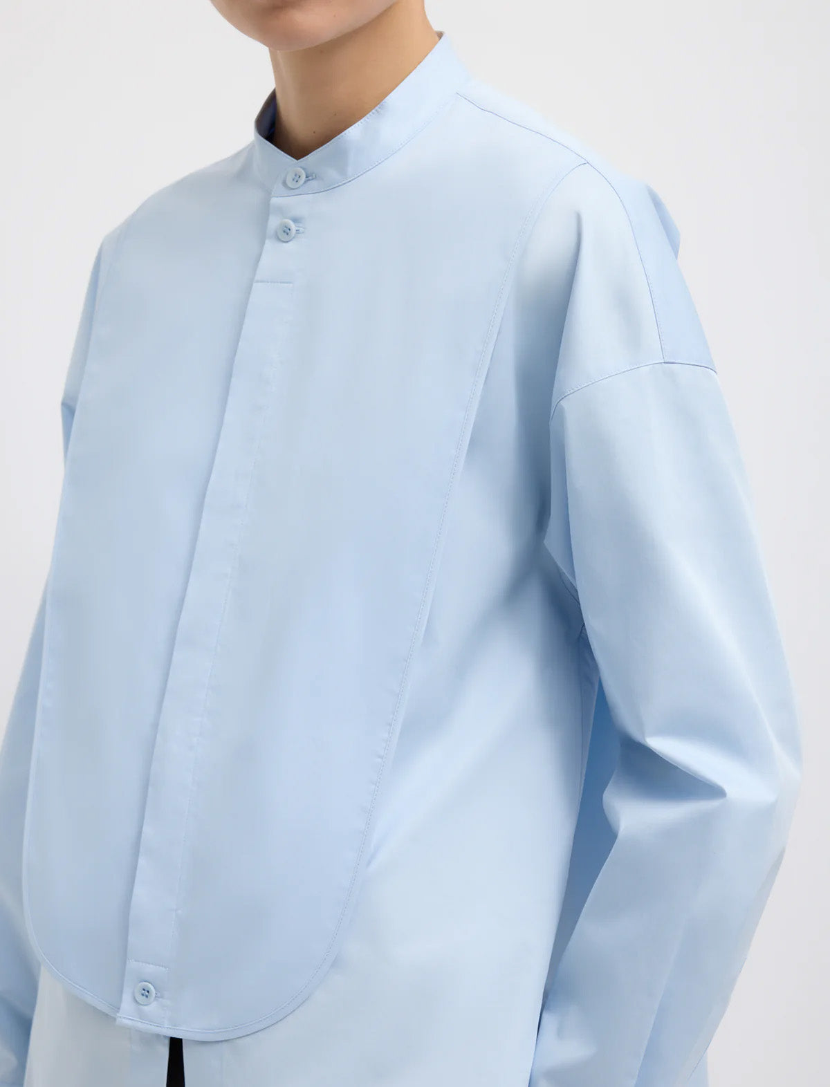 TIBI Eco Poplin Tuxedo Shirt With Bib Flap in Chambray Blue