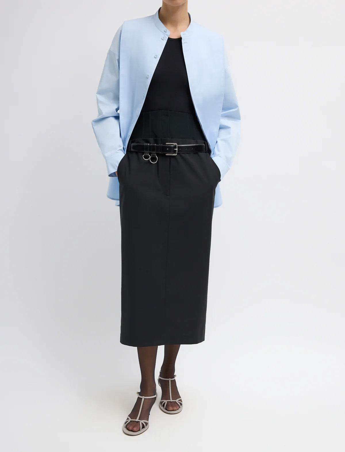 Our signature Eco Poplin reimagined through the lens of tuxedo shirting. Clean yet directional, it is the ultimate PDW hero. Button it up for work, layer it open for weekend ease, or tuck it into a corset skirt for modern polish. Style with the Calder Sweatpant and Herbert Loafer for errands, or elevate with the Tropical Wool Corset Trouser Skirt and Milbourne Heel for a Chill Modern Classic evening look. A Ring 3 staple you will return to again and again.