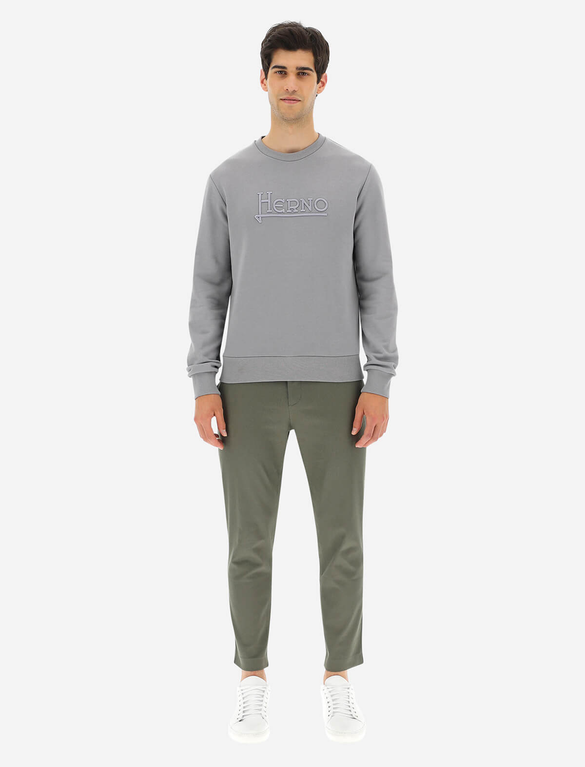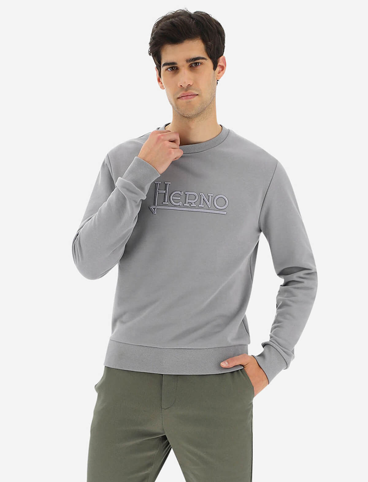 HERNO Cotton Sweater in Pearl Grey