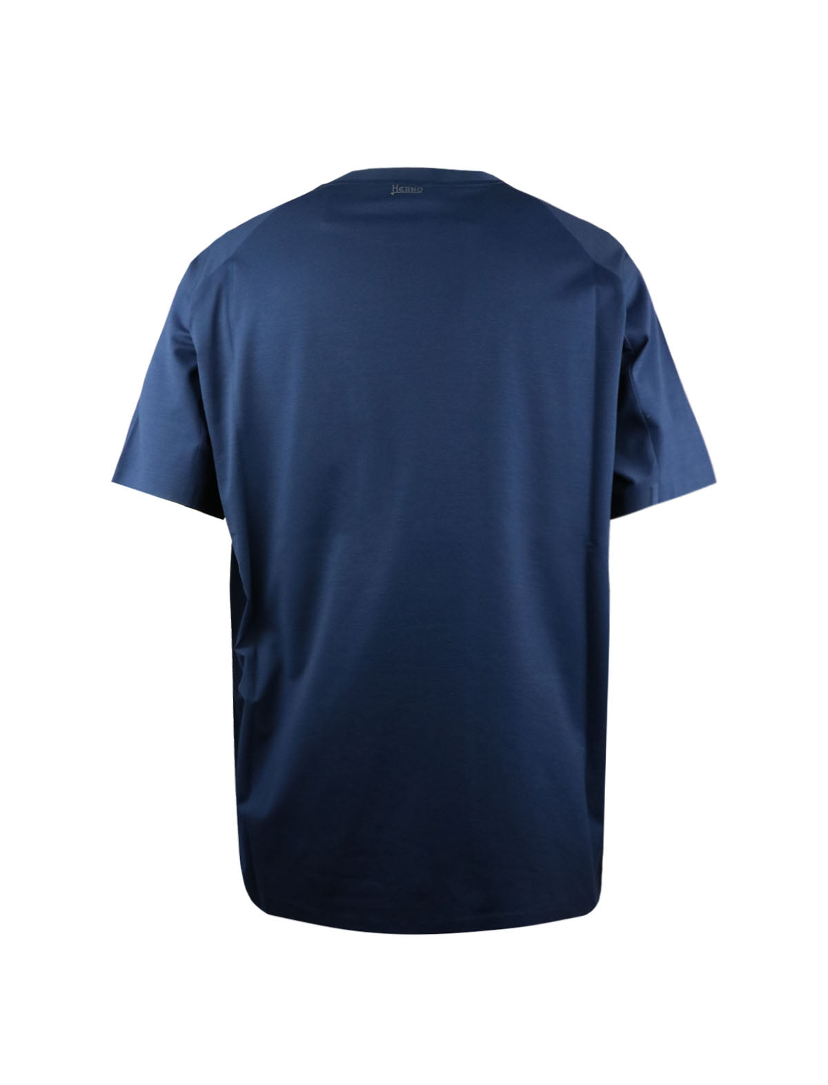 HERNO Superfine Cotton Stretch T-Shirt in Blue Navy