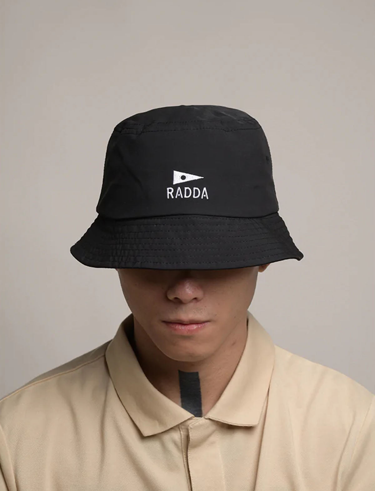 A classic, crushed nylon bucket hat featuring a branded embroidered logo and a sleek silhouette. Throw this on atop any outfit to complete the look and look effortlessly put together. Available in white and black.