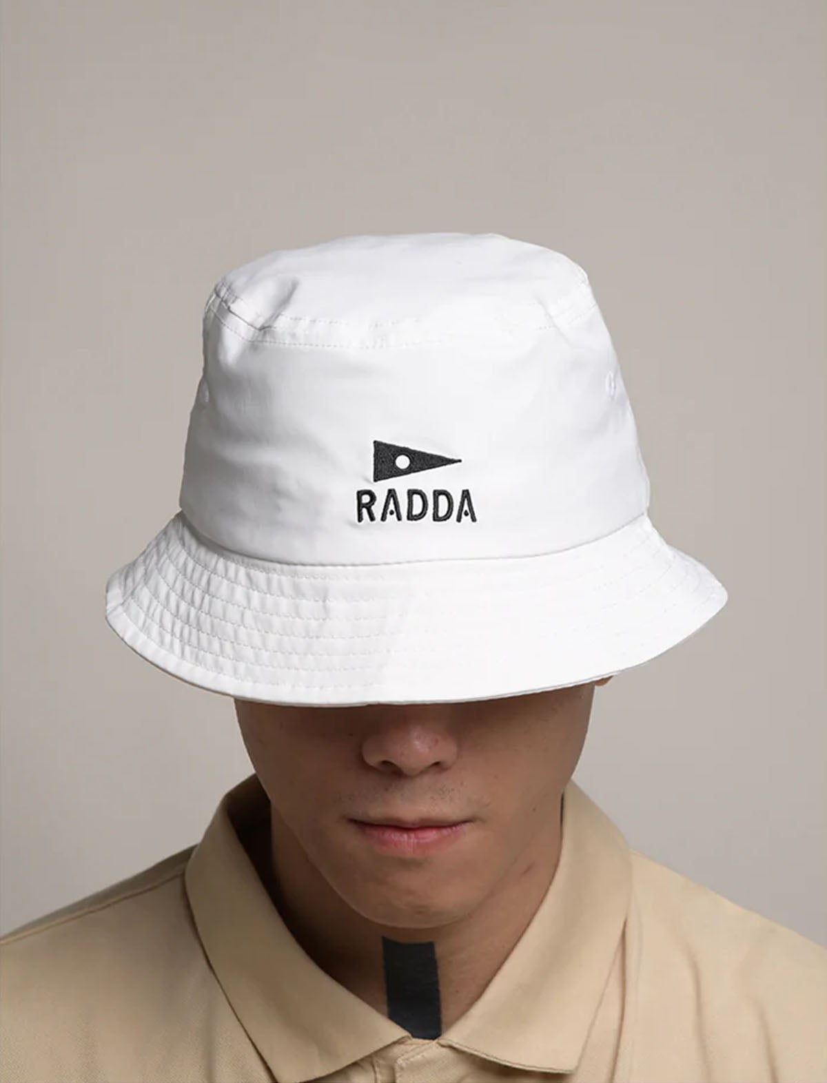 A classic, crushed nylon bucket hat featuring a branded embroidered logo and a sleek silhouette. Throw this on atop any outfit to complete the look and look effortlessly put together. Available in white and black.