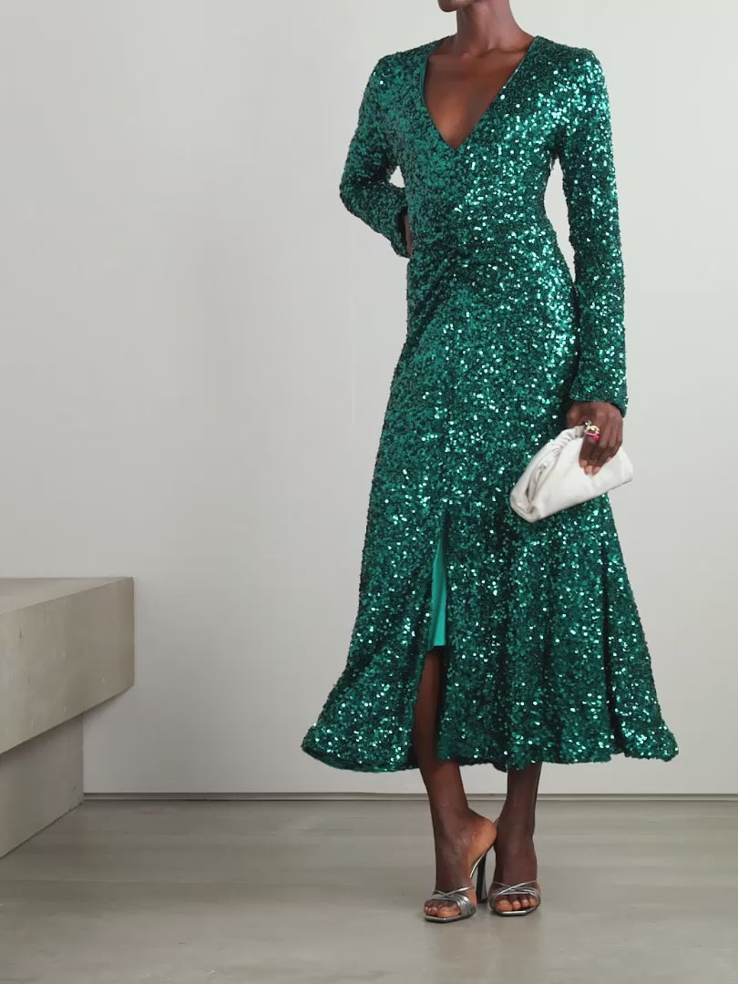 ROTATE Holiday Sierra Sequin Slit Dress in Teal