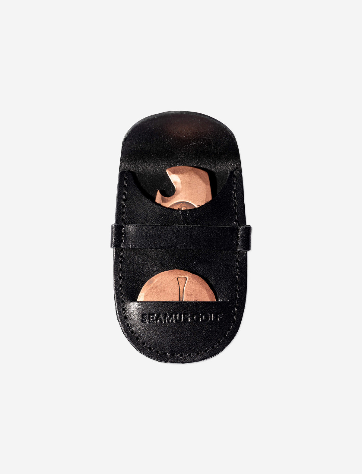 Play the game in style with with this classy divot tool and ball mark bundle hand-forged at 2,200 degrees and hand-hammered to perfection. Both feature the Broken Tee logo and are protected by a bridle leather holster. They're part of the essentials you need on the green.