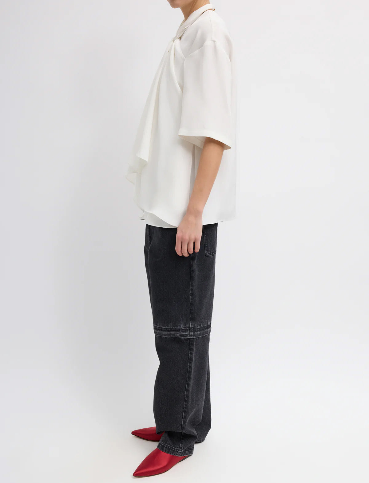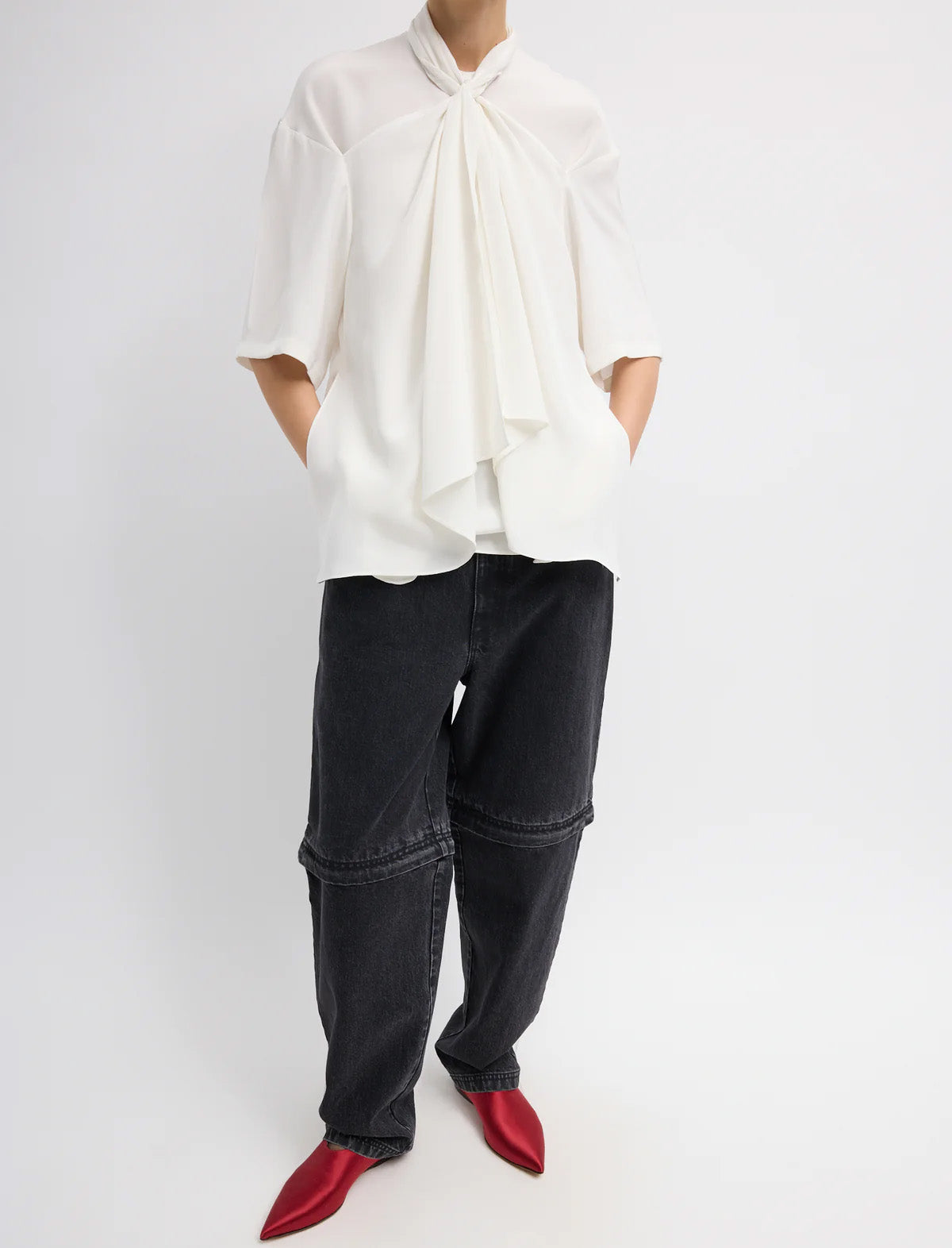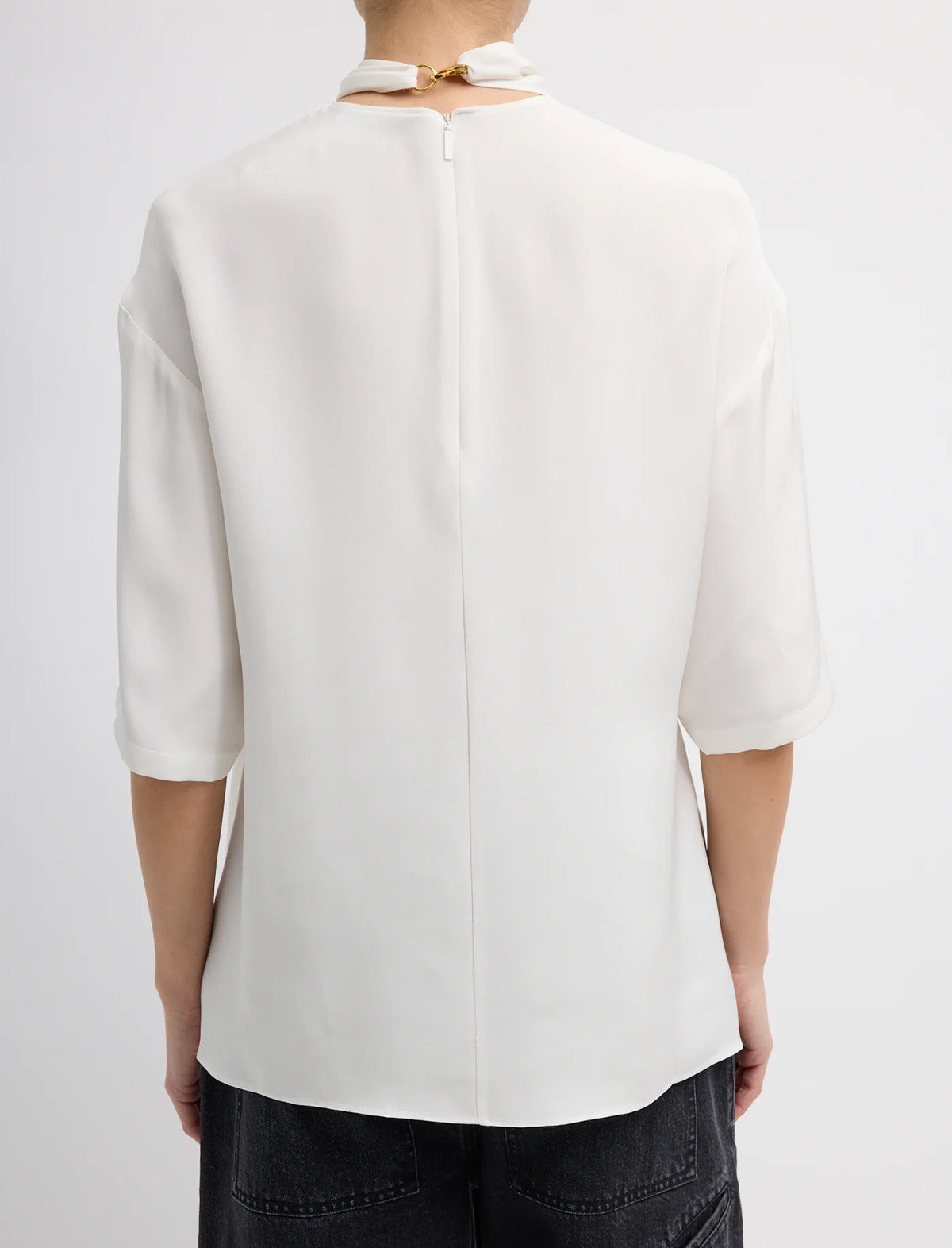TIBI 4-Ply Silk Tie Front Top in Ivory