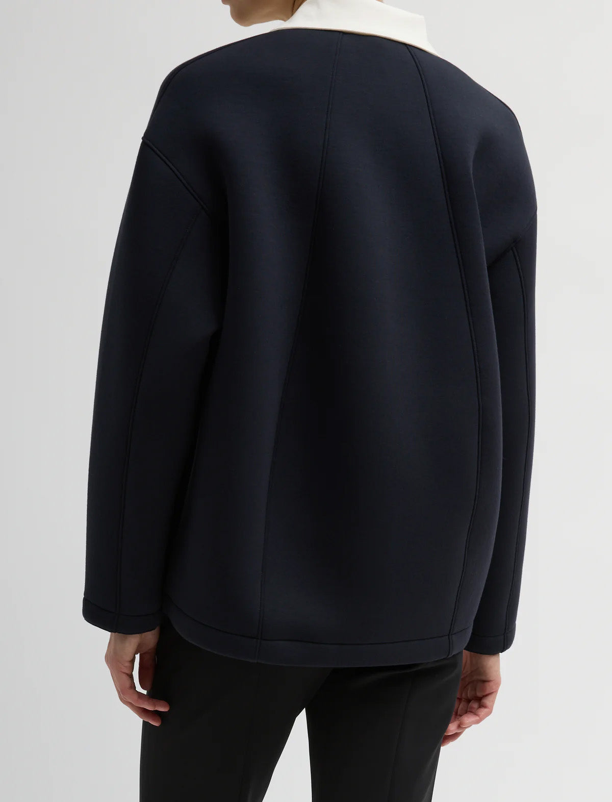 Crafted from luxurious Italian double-bonded elastic jersey, the Bonded Viscose Sculpted Polo is soft, lightweight, and designed to elevate everyday dressing. Featuring a contrasting collar with multiple snap closures for adjustable styling. Pair it with the Compact Tech Cropped Bootcut Trouser and a Seth High Top for sporty ease, or dress it up with this season’s skirting for a polished, modern look that transitions seamlessly from day to night.