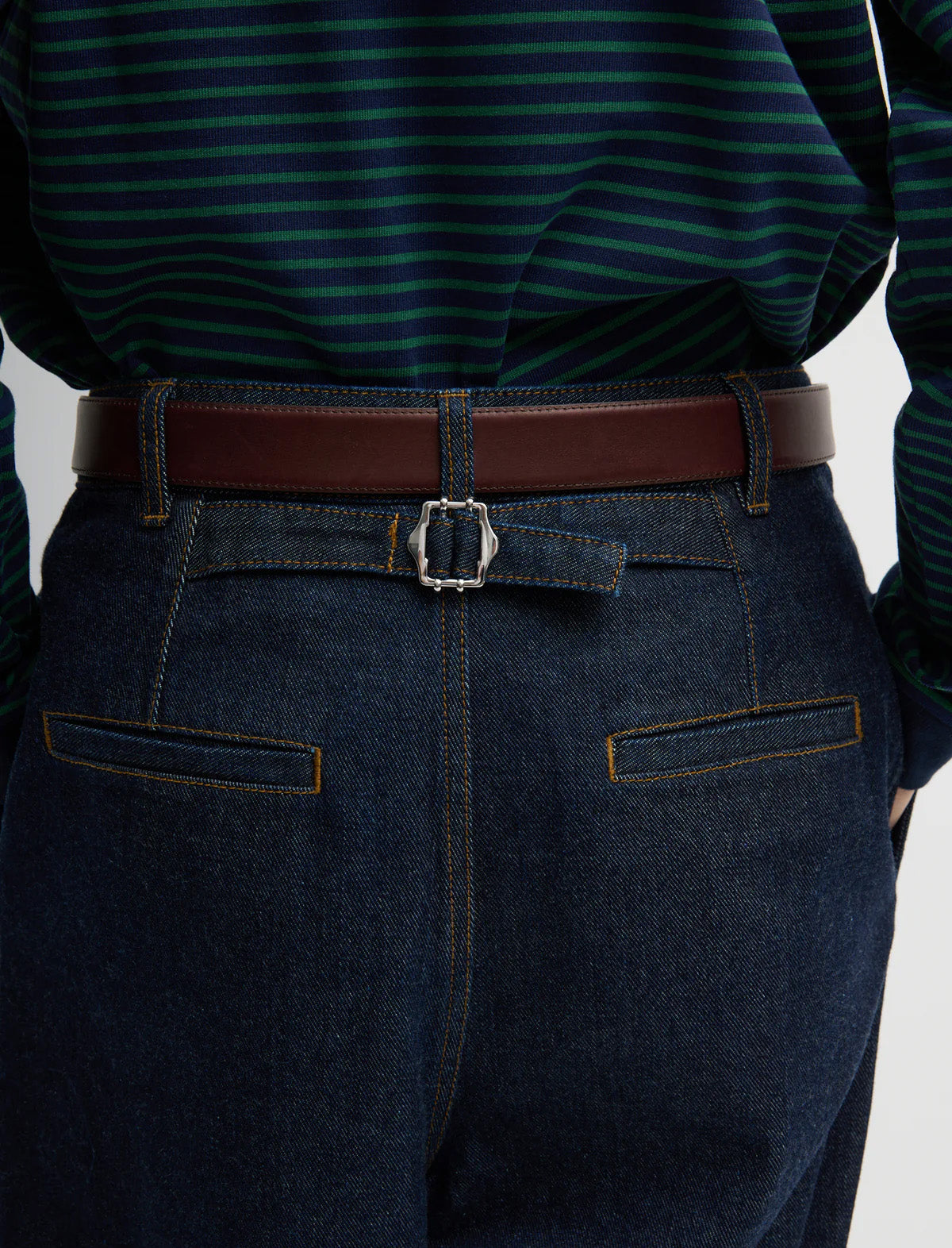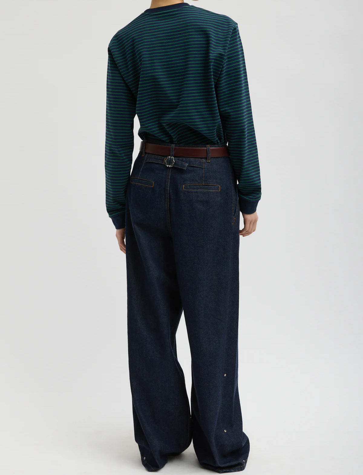 The Indigo Denim Triple Pleat Jean reimagines raw indigo denim through a sculpted, wide-leg silhouette. With three adjustable hemline options, this pant adapts effortlessly to your day—merging the structure of tailoring with the ease of denim. A true hybrid design, it brings proportion and polish to every look. Pair it with the Perfect Striped T for an easy take, or dress it up to transition from Play to Work to Dinner with ease.