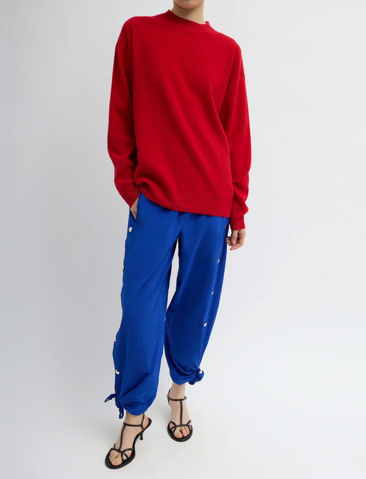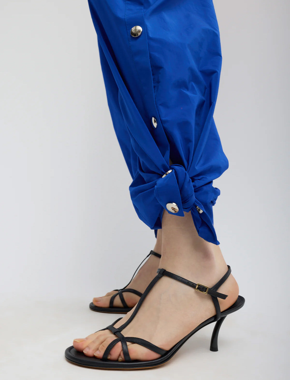 TIBI Nylon Snap Pull On Jogger in BlueShipping and handling fees will be calculated at checkout. Customs duties, import taxes, or GST (if applicable) are not included and may be collected by the shipping carrier upon delivery. Please see our Shipping Policy for details.