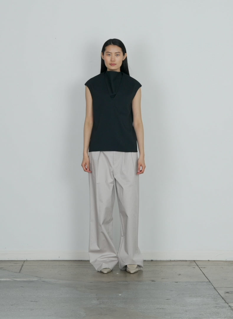 An updated take on the well-loved Chalky Drape textile, this low-key, high-style top instantly levels up any outfit, scouts honor. The removable handkerchief — attached seamlessly with button closure — features an elegant v-neckline underneath to optimize and complimented with subtle shoulder pads to maximize outfitting possibilities. Rest assured, this highly-pushed style is ultimately very wearable, transcending seasons to fill that ‘je ne sais quoi’ sized hole in your closet.